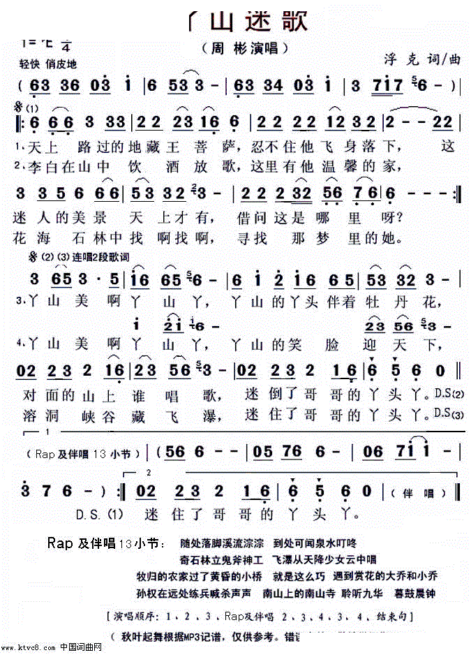 - [歌谱] 情迷南宫山