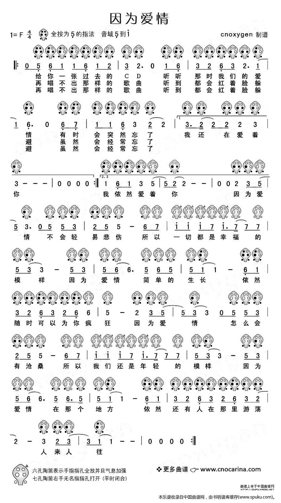 - [笛子谱,陶笛谱] 因为爱情 陶笛