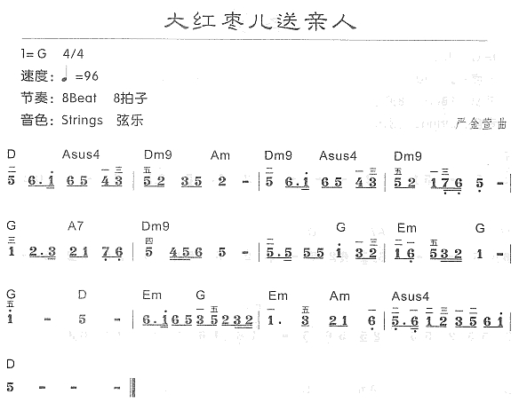 民歌钢琴小曲 大红枣儿送亲人