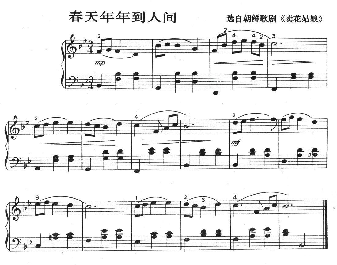 春天年年来到人间 朝鲜电影 卖花姑娘 插曲 合唱谱