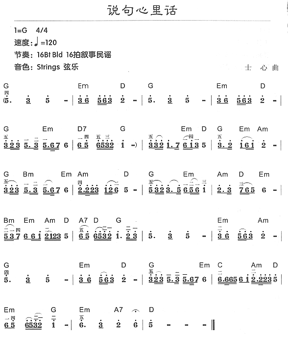 - [歌谱] 说句心里话