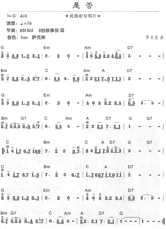 - [笛子谱,歌谱,箫谱] 是否 苏芮