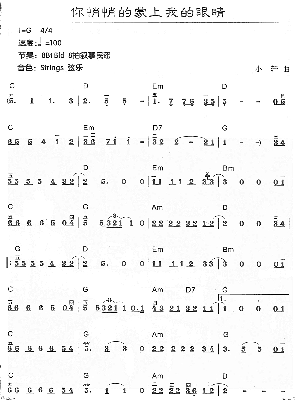 我悄悄地蒙上你的眼睛 张云华配和弦版