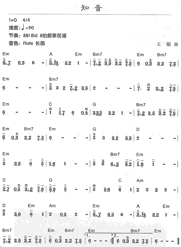 - [单簧管谱,歌谱,手风琴谱] 知音