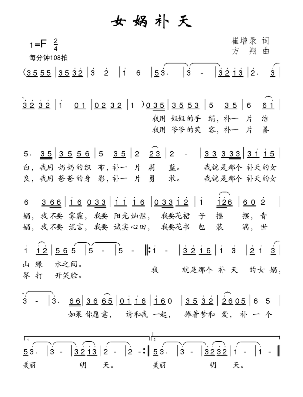 - [歌谱] 女娲补天