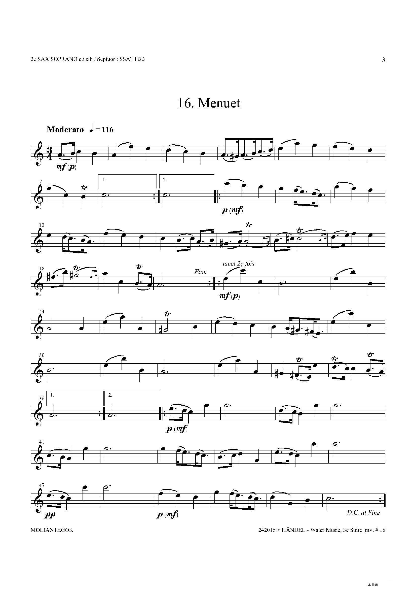 Water Music HWV 350 No 3 第二次中音萨克斯