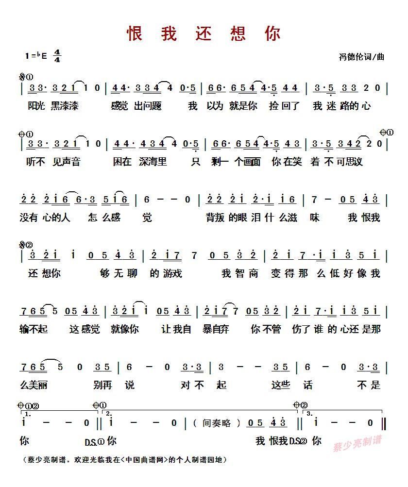 - [歌谱] 爱你恨你却想你 尚裘峰