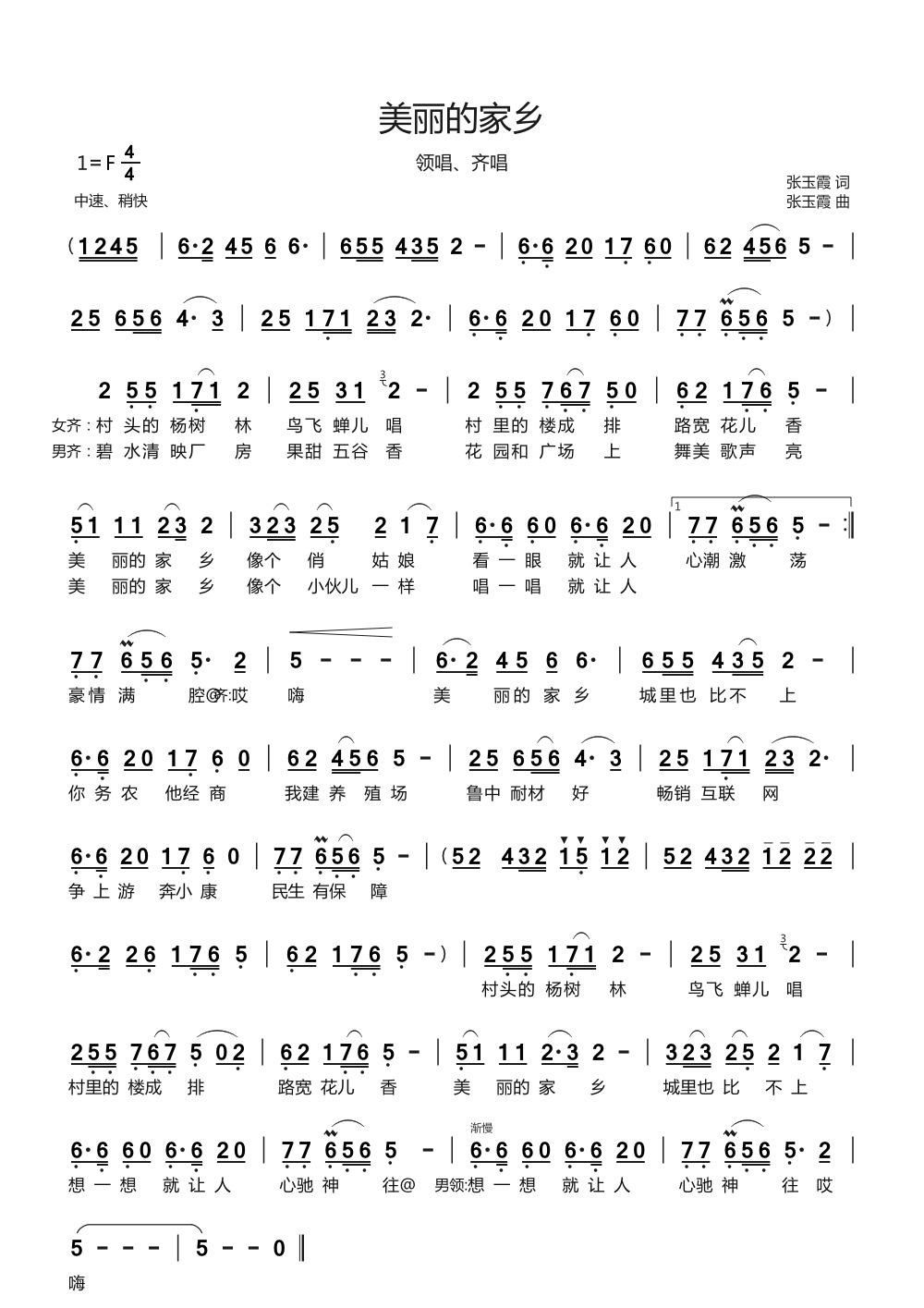 - [歌谱] 美丽的家乡
