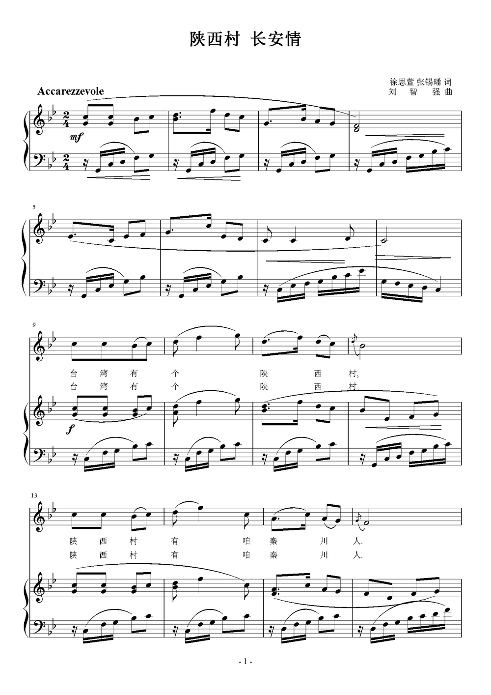 - [歌谱] 陕西村 陕西人 电视剧陕西村插曲