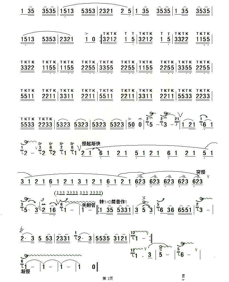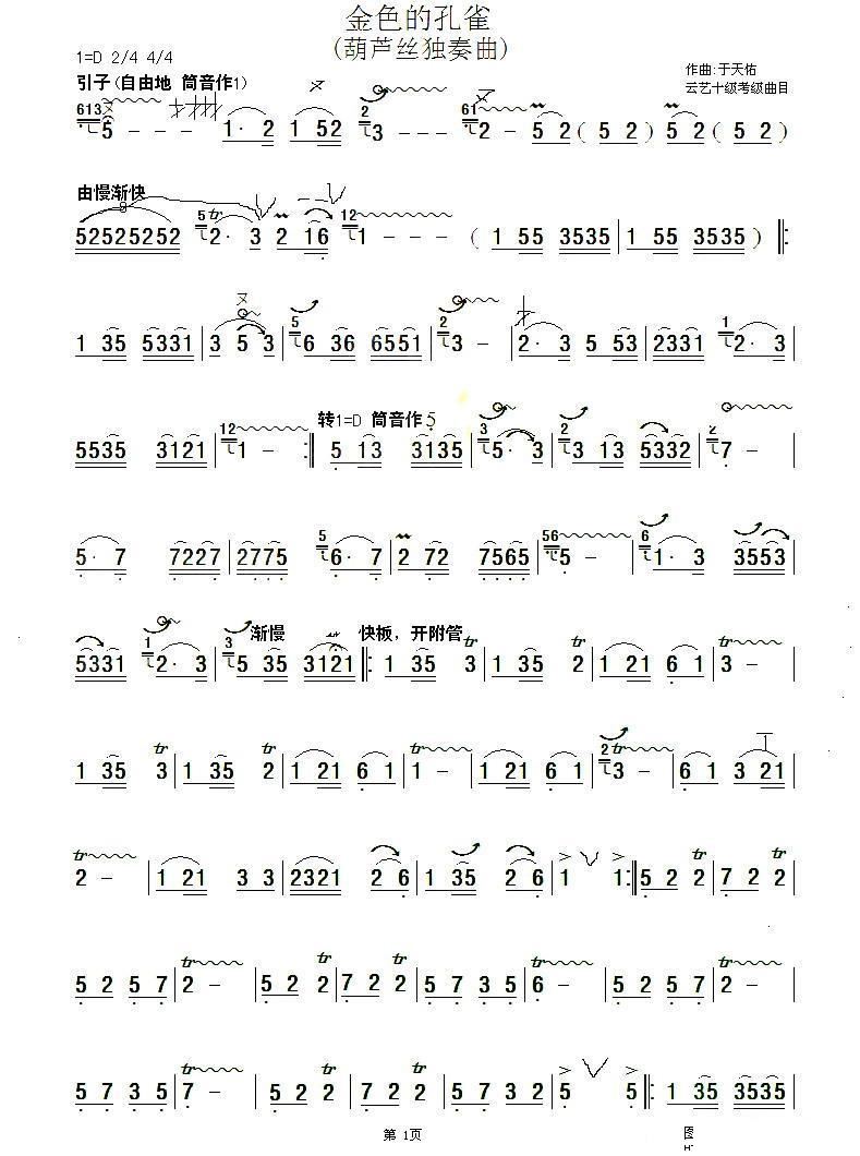 边陲风情之一 金色的孔雀 三弦 乐器谱