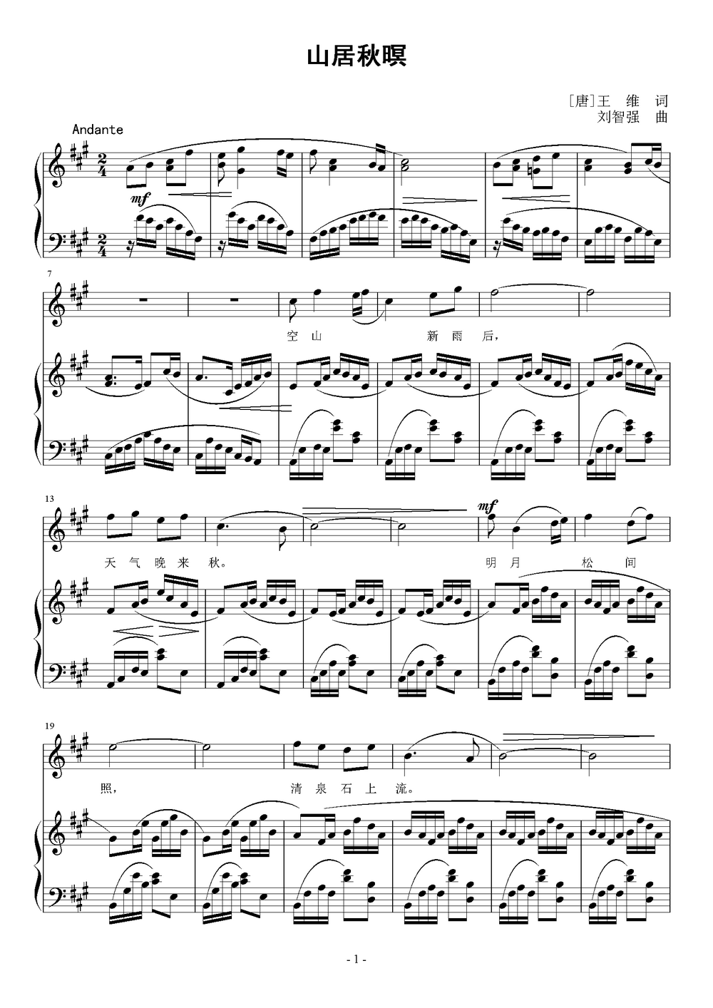 - [歌谱] 山居秋暝