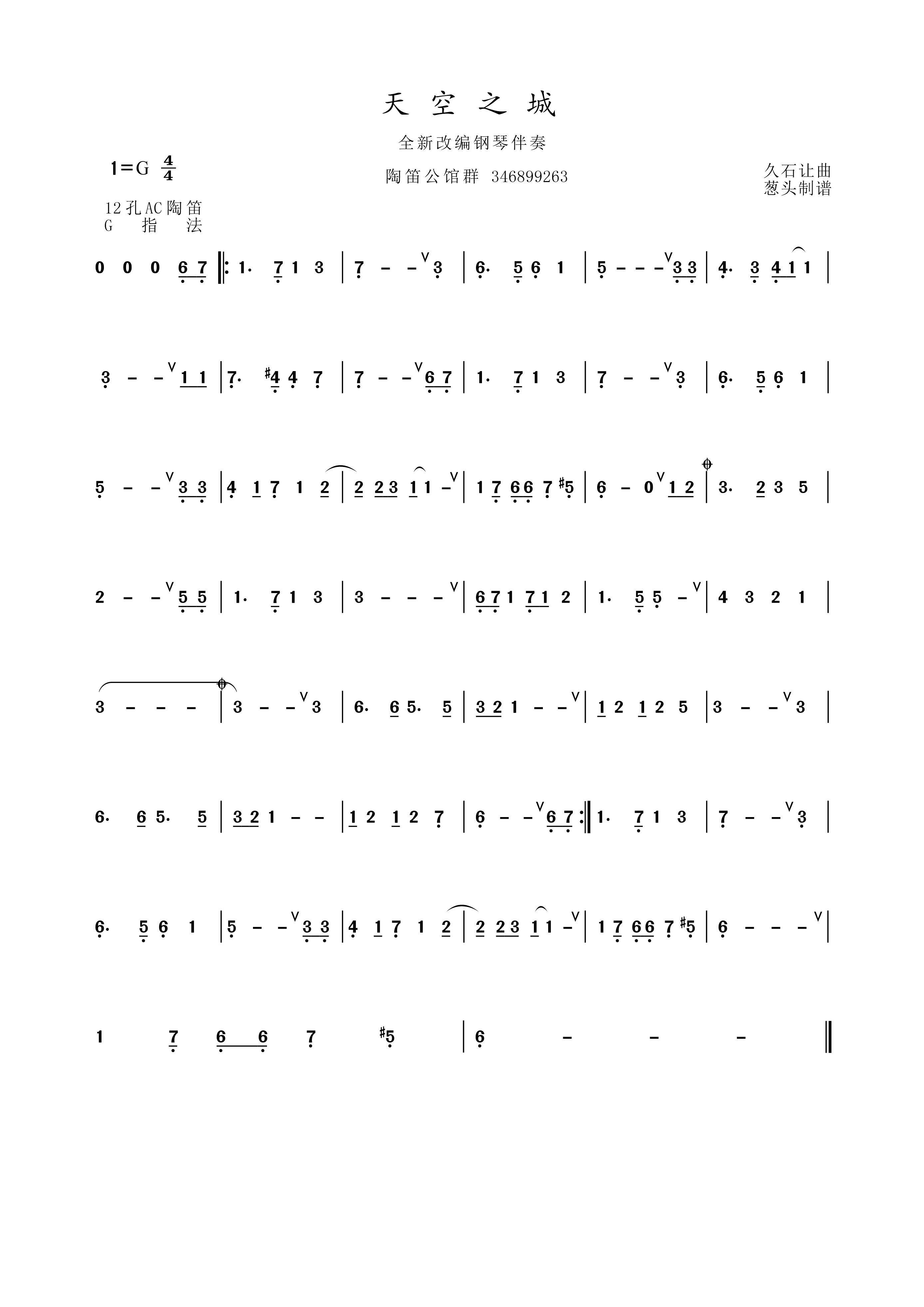 - [钢琴谱,歌谱] 天空之城 八音盒