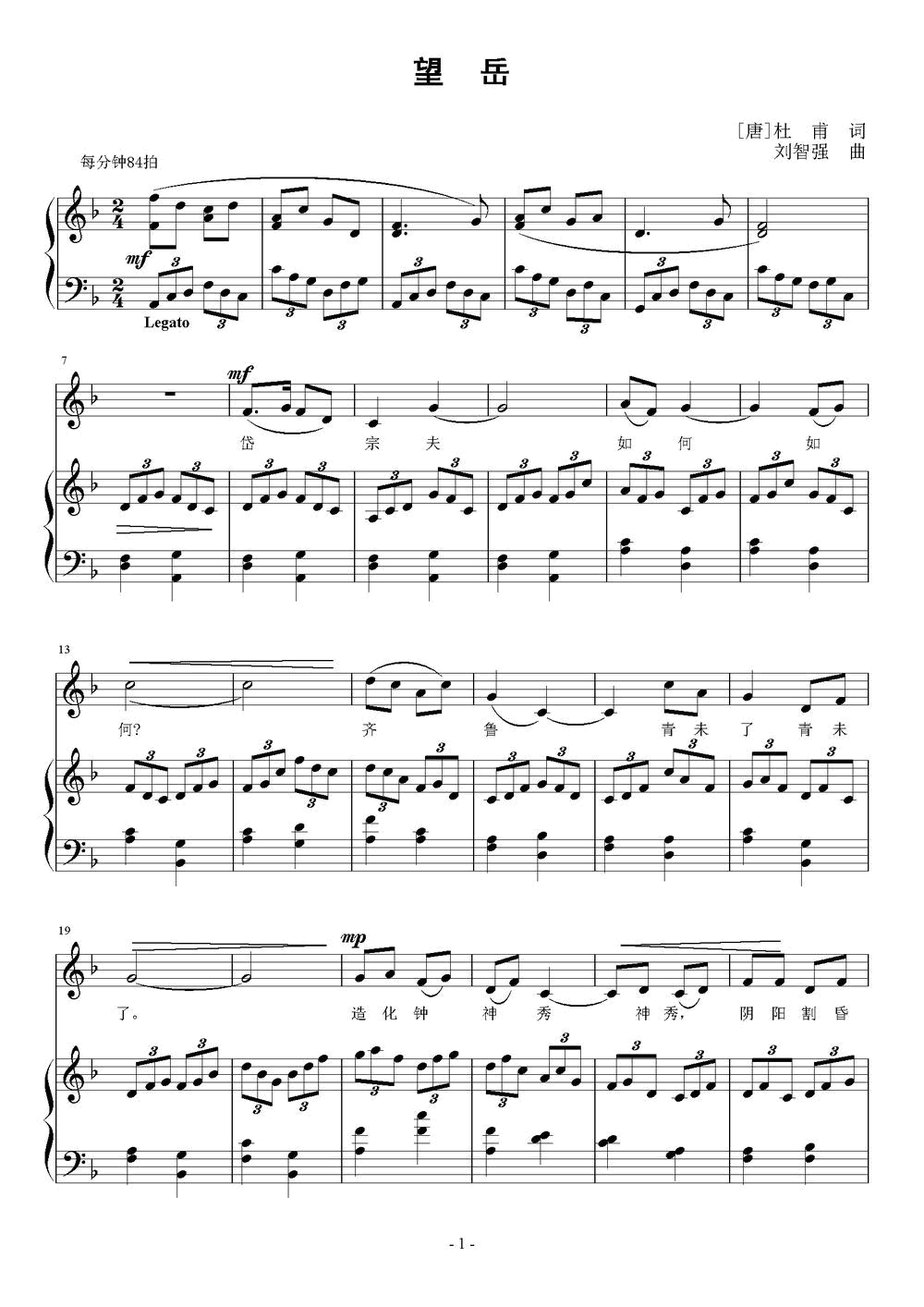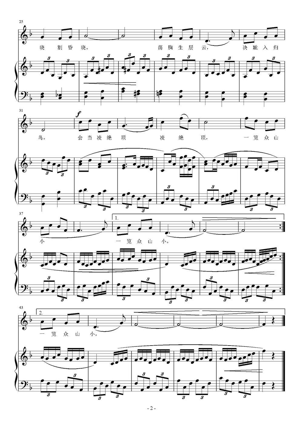 - [歌谱] 望岳 唐