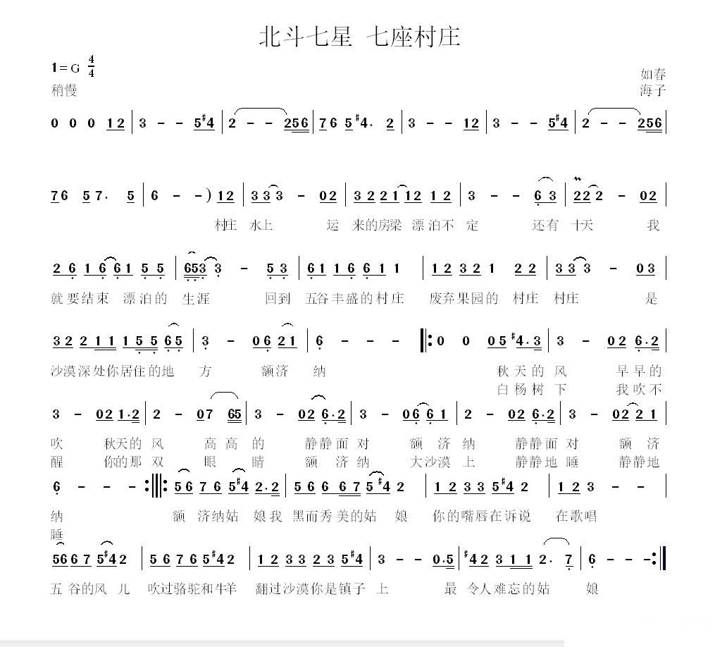 - [歌谱] 天上北斗亮晶晶