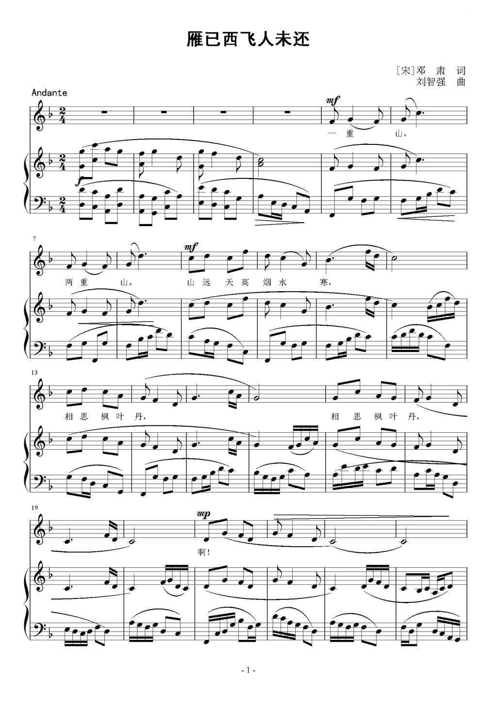 - [歌谱] 雁已西飞人未还