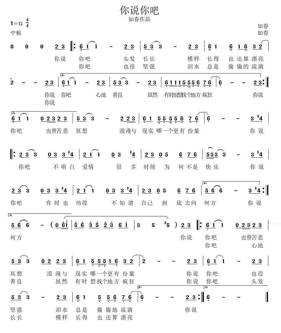 - [歌谱] 如果你也听说