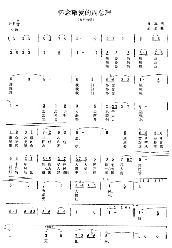 怀念敬爱的周总理 女声独唱