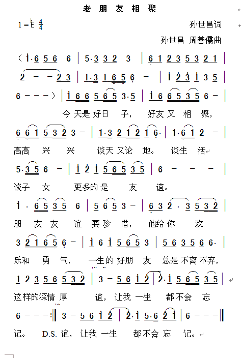 - [歌谱] 新朋友 老朋友
