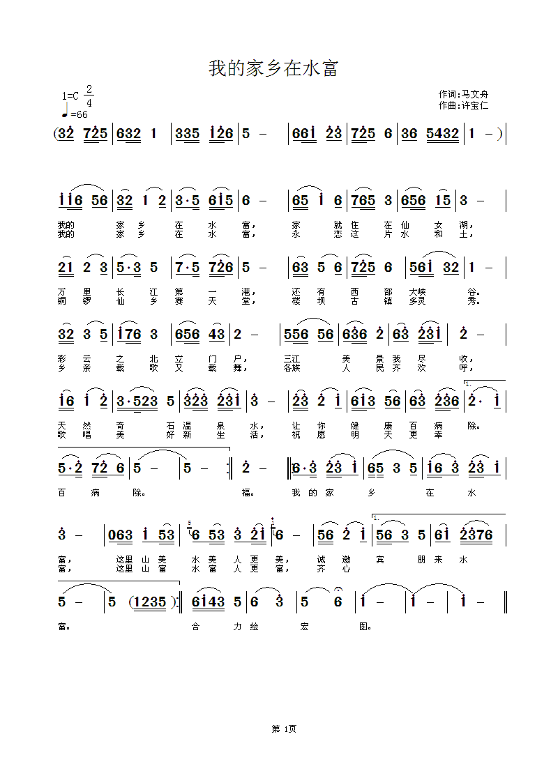 - [歌谱] 美丽的维西我的家