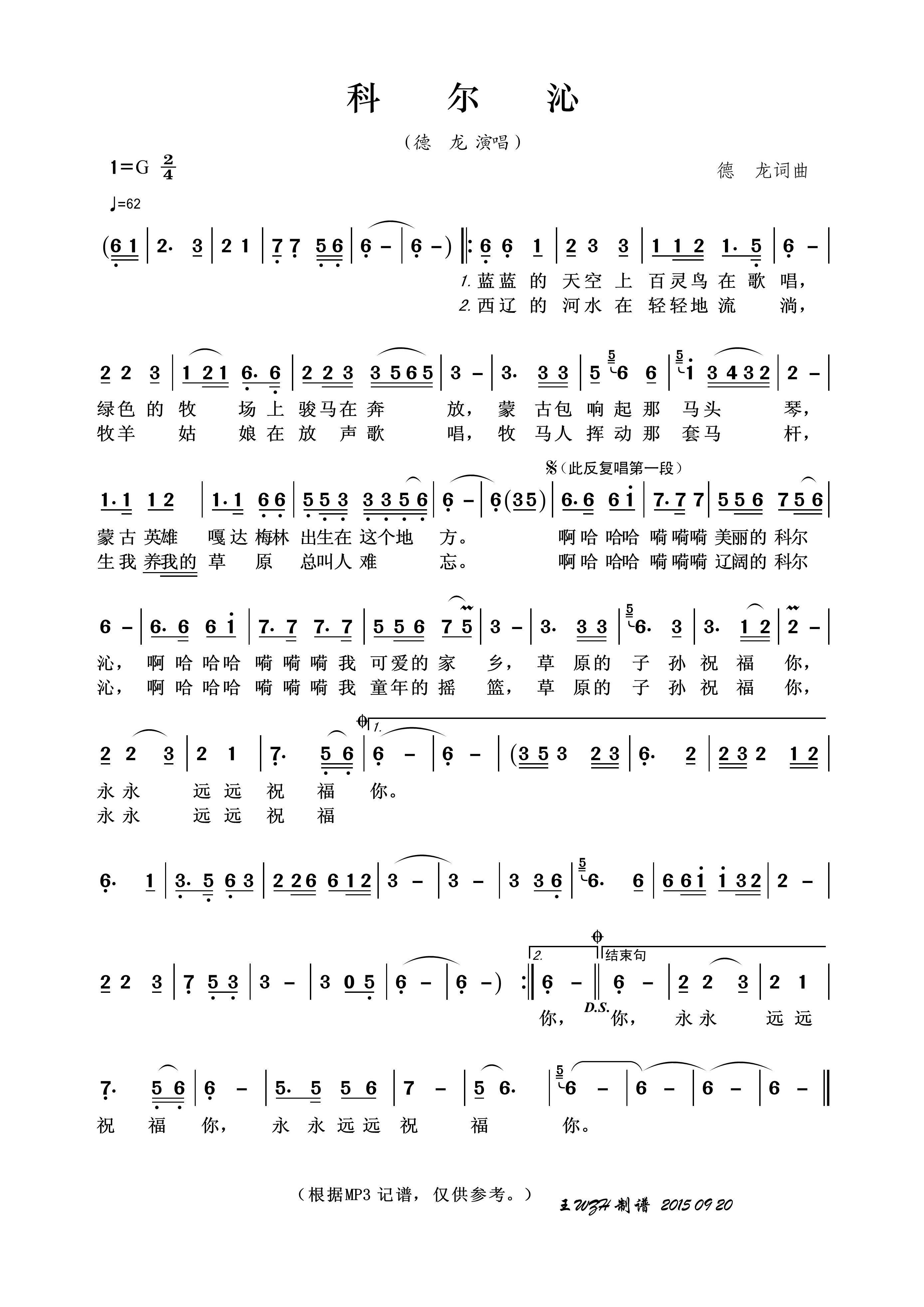 - [歌谱] 科尔沁草原 斯琴朝克图