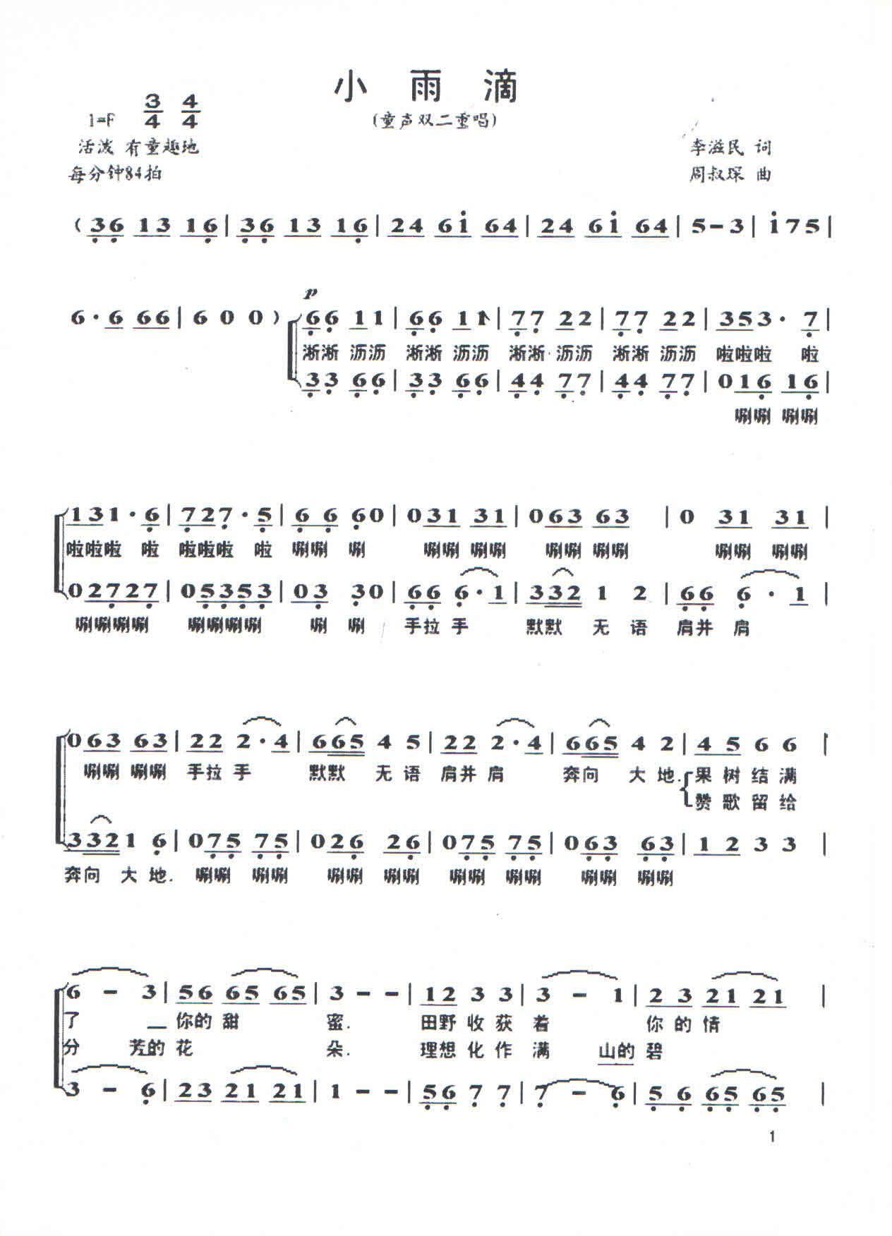 - [歌谱] 小雨滴