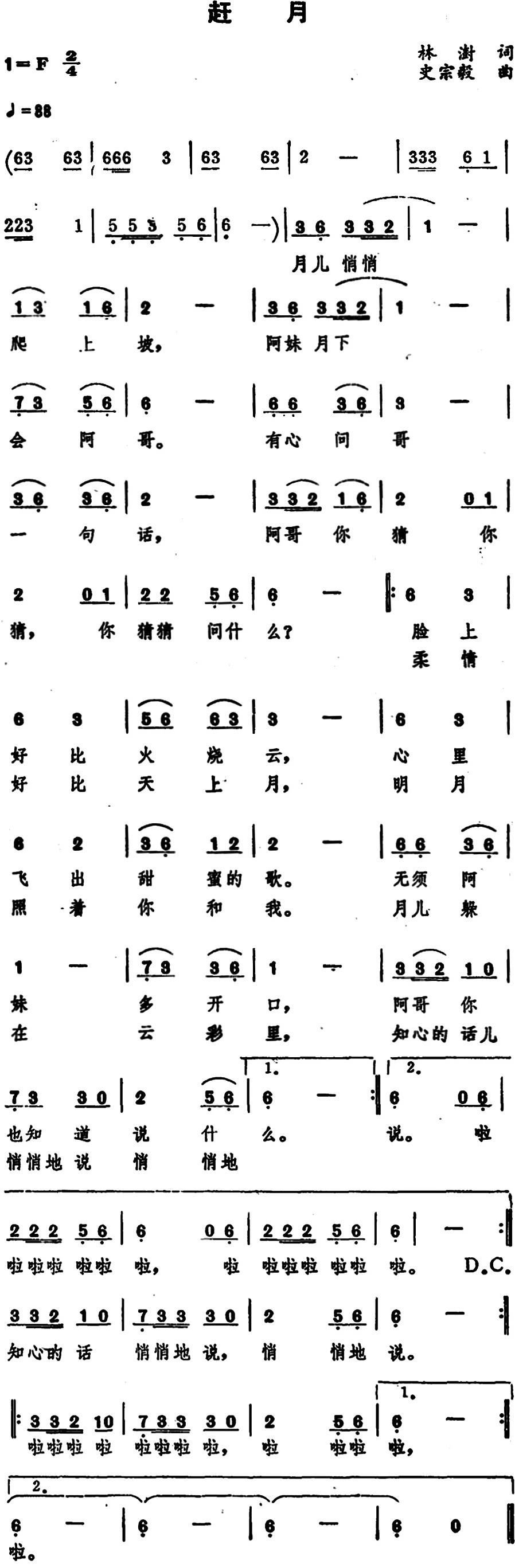 - [歌谱] 赶月亮 牟诺