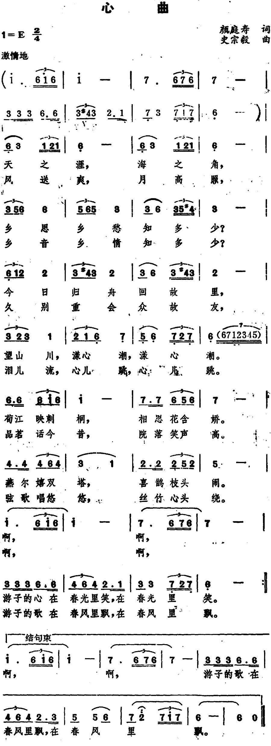 - [歌谱] 心曲