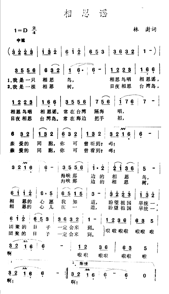 - [歌谱] 侨胞的恋歌