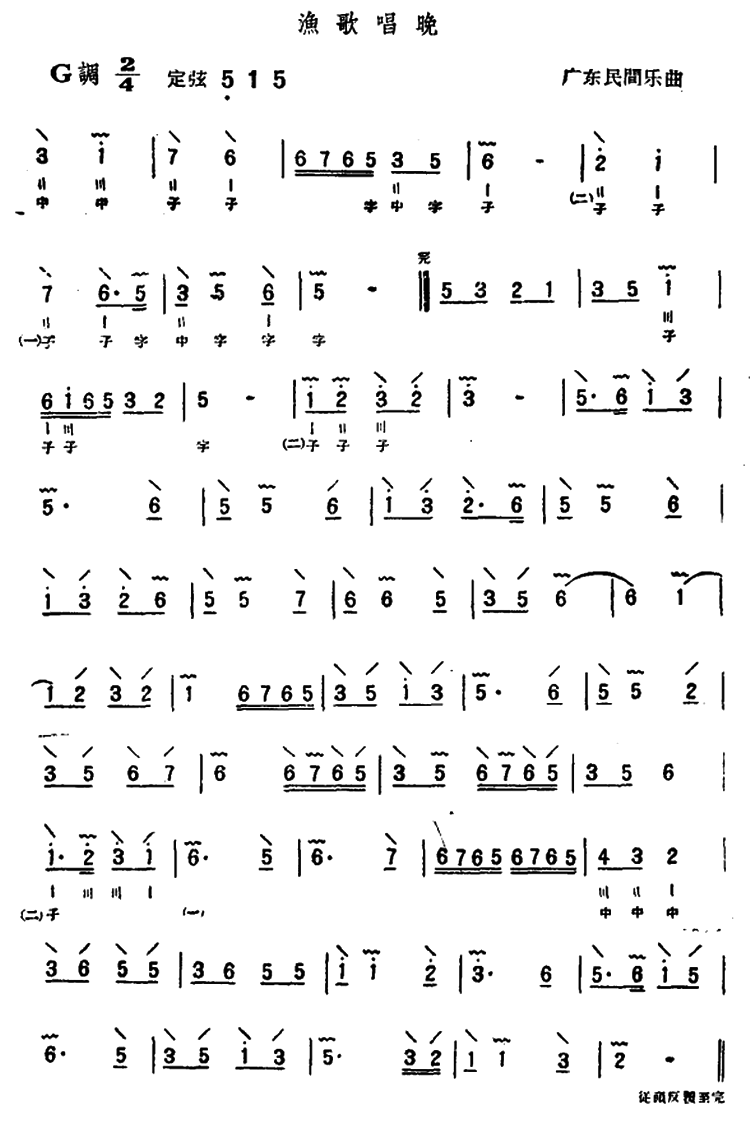 - [歌谱] 渔歌晚唱 广东音乐