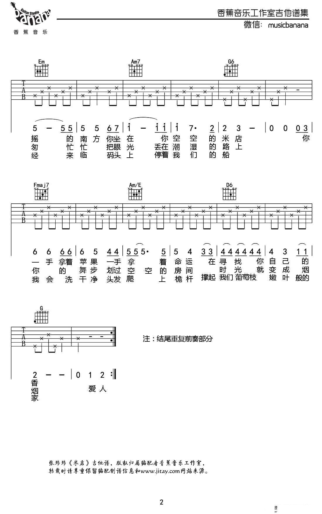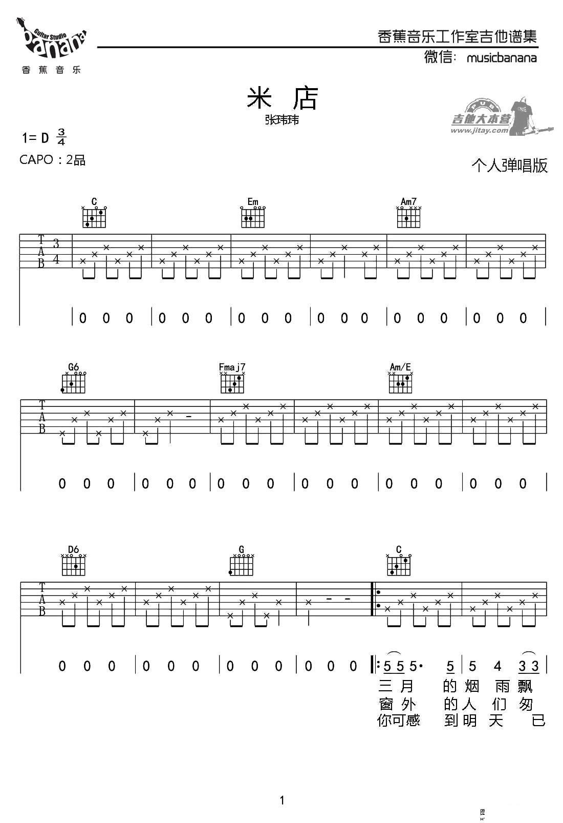 - [吉他谱] 米店 香蕉音乐工作室编配版
