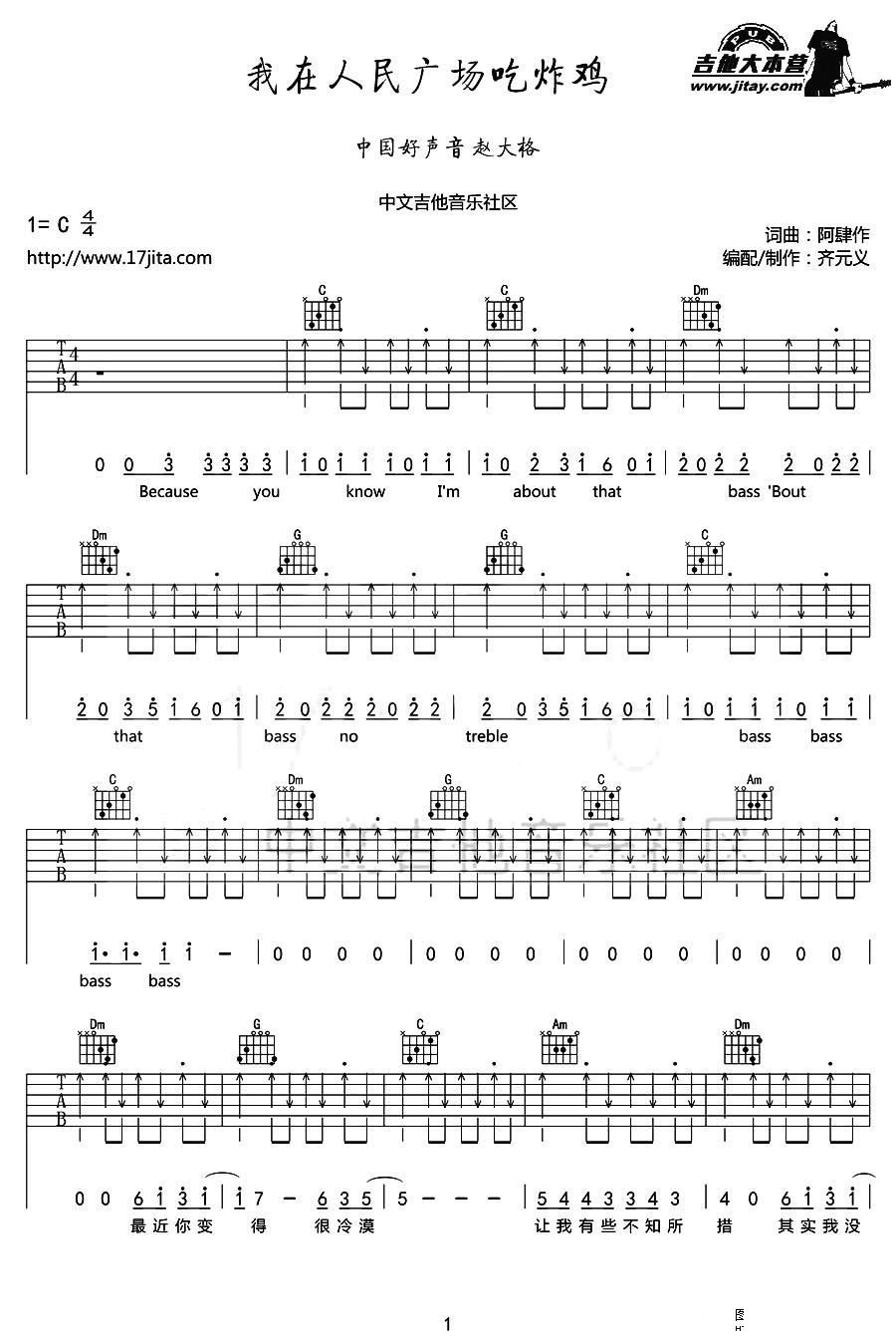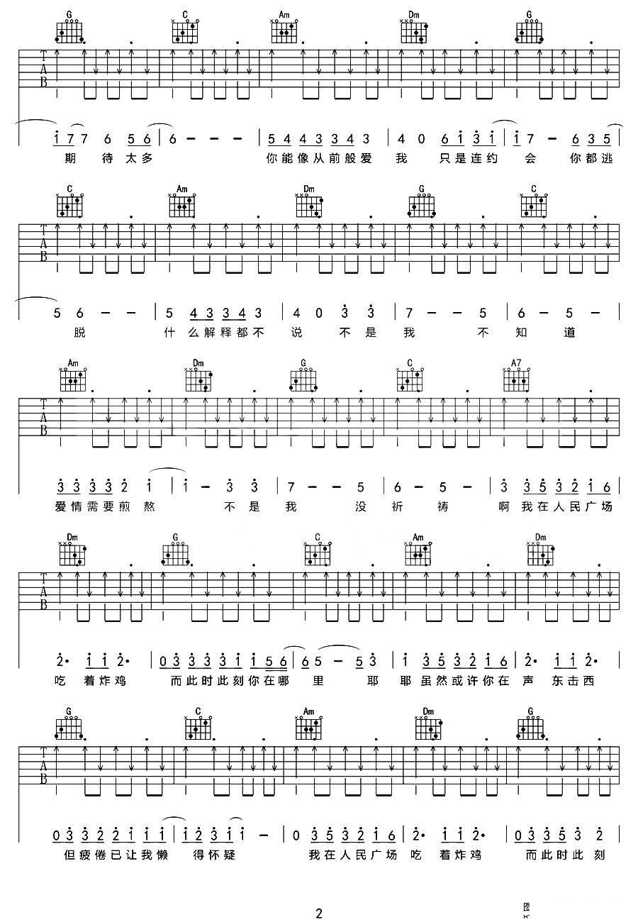 - [吉他谱] 我在人民广场吃炸鸡
