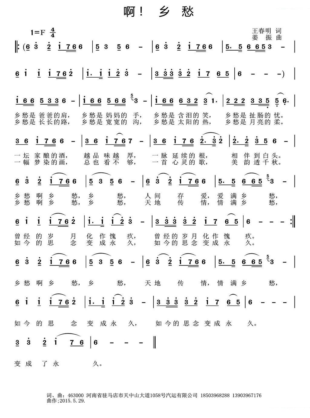 - [歌谱] 乡愁啊乡愁