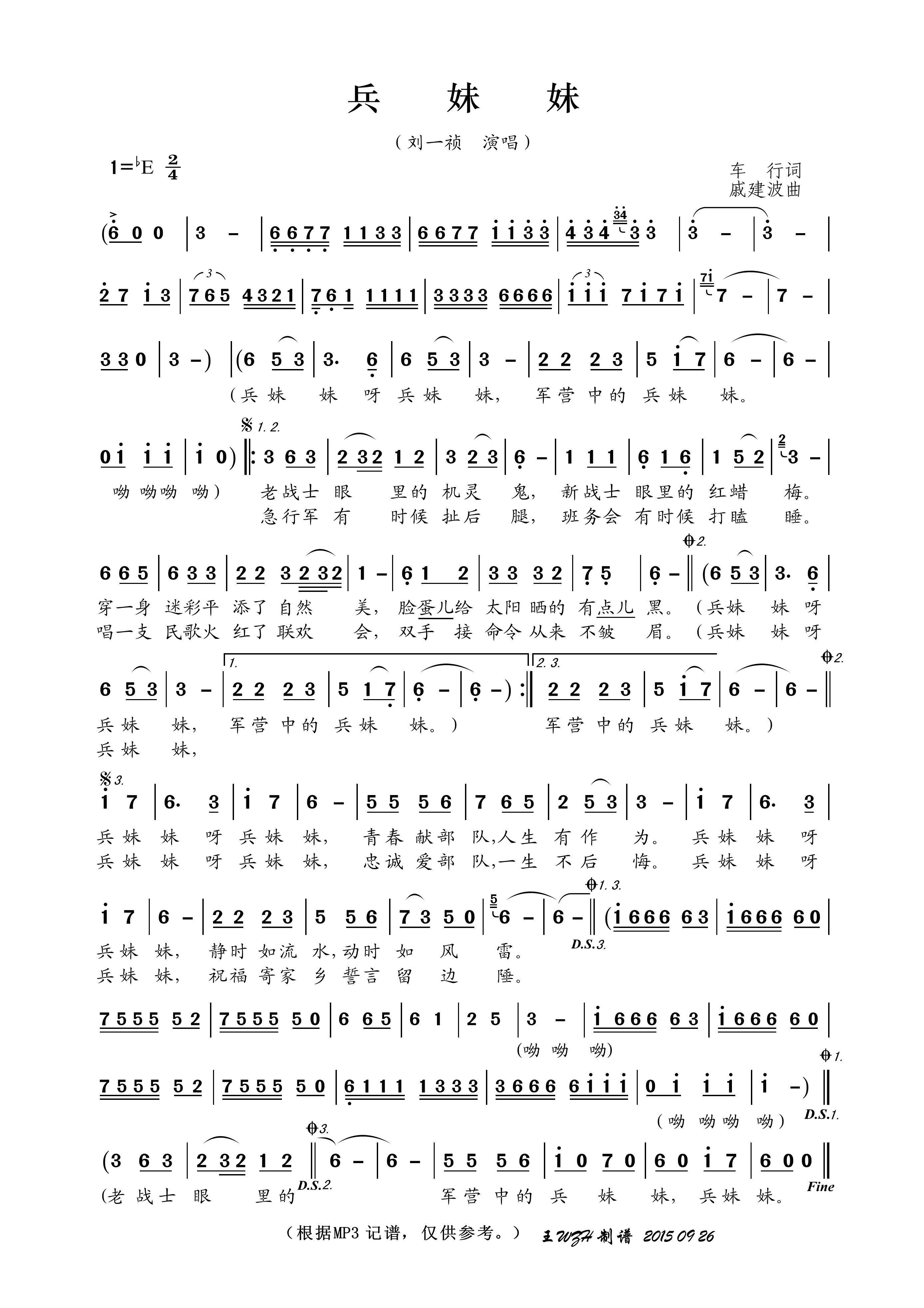 - [歌谱] 兵妹妹