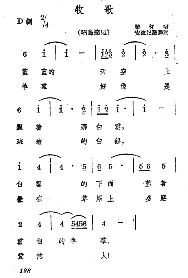 > 牧歌 蒙古族民歌 安波记谱译词版