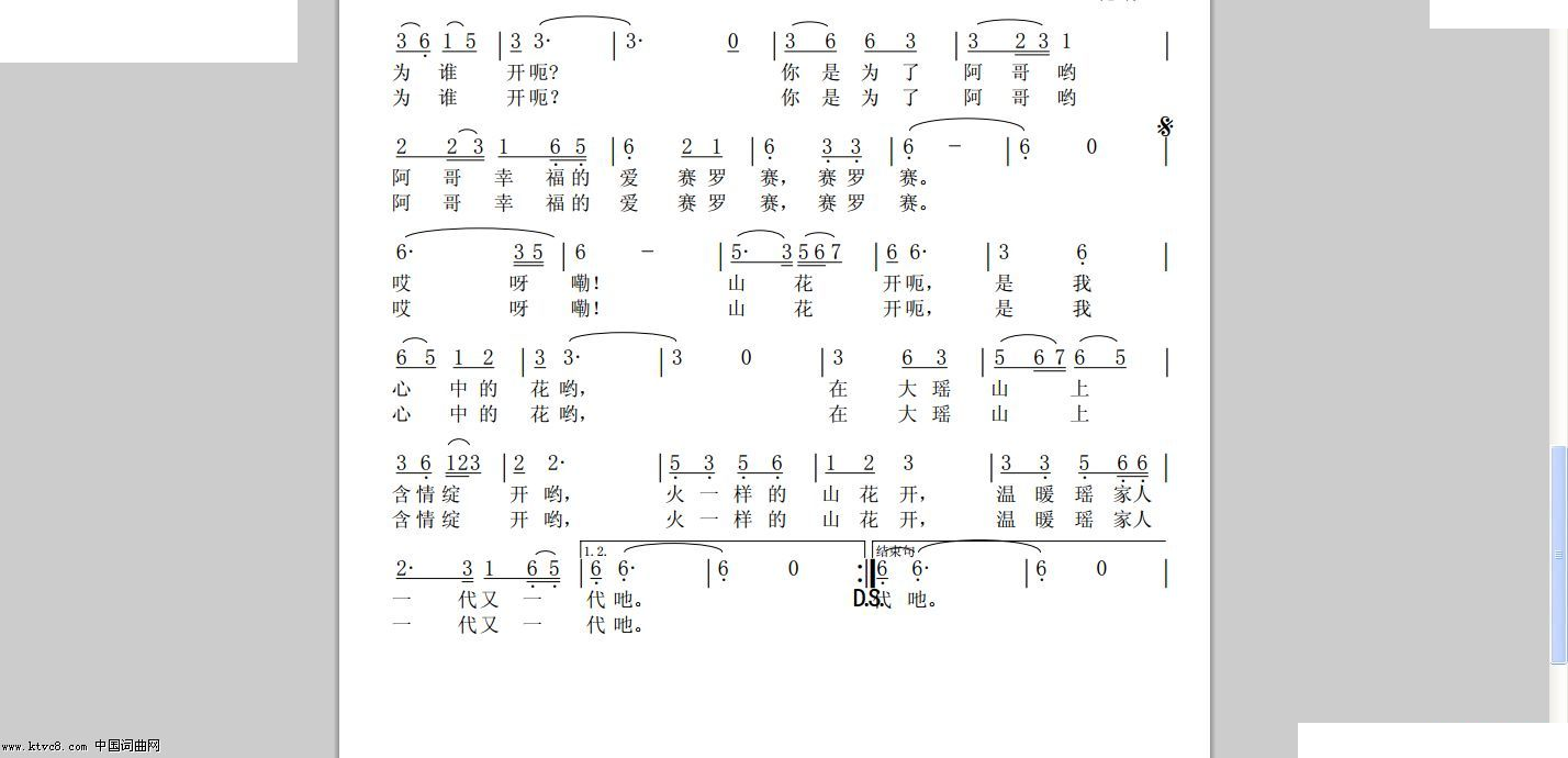 - [歌谱] 山花朵朵开