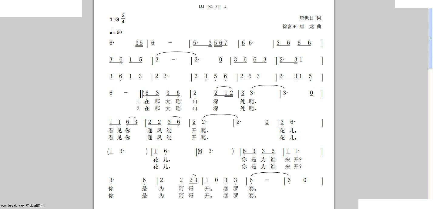 - [歌谱] 山花开