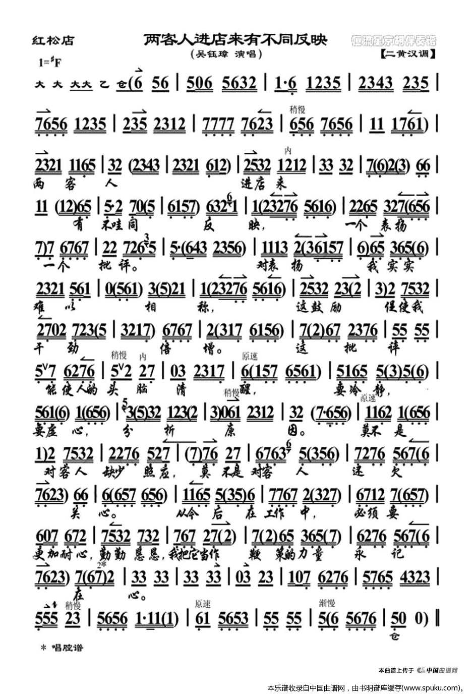两客人进店来有不同反映 红松店 选段 京剧戏谱