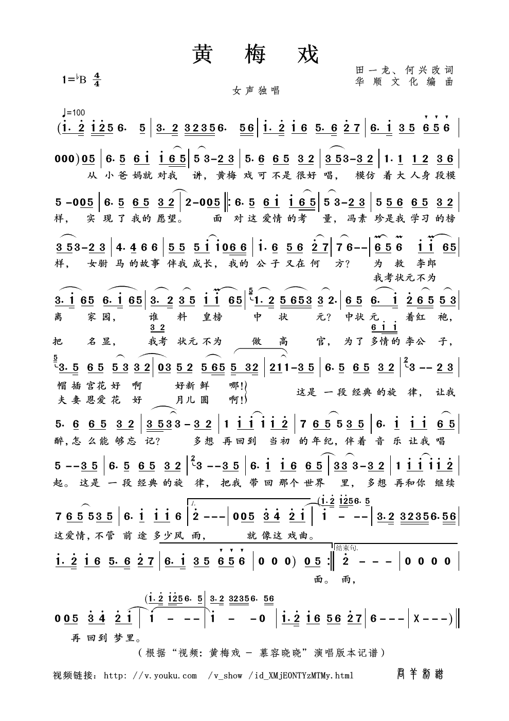 - [歌谱,黄梅戏谱] 黄梅戏 慕容晓晓