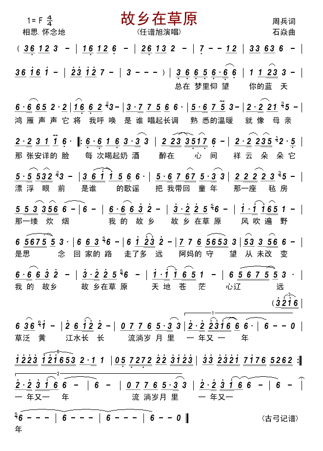 - [歌谱] 故乡草原