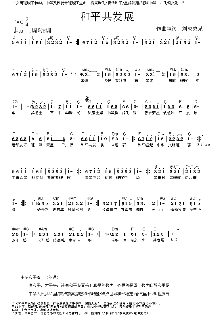 > 和平共发展 带和弦版