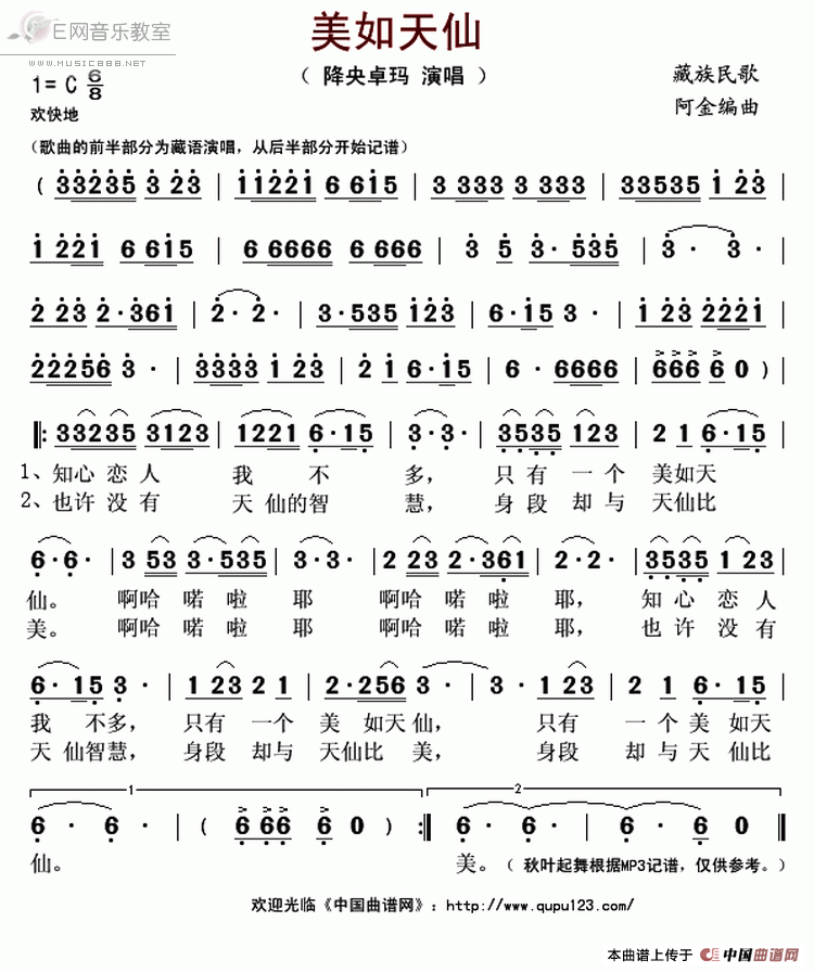 - [歌谱] 草原夜色美 德德玛 降央卓玛