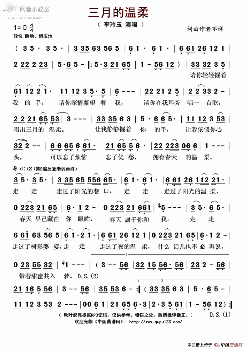 - [歌谱] 三月的记忆