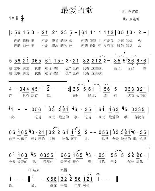 最爱的歌 一首深情的生日祝福歌 彩谱