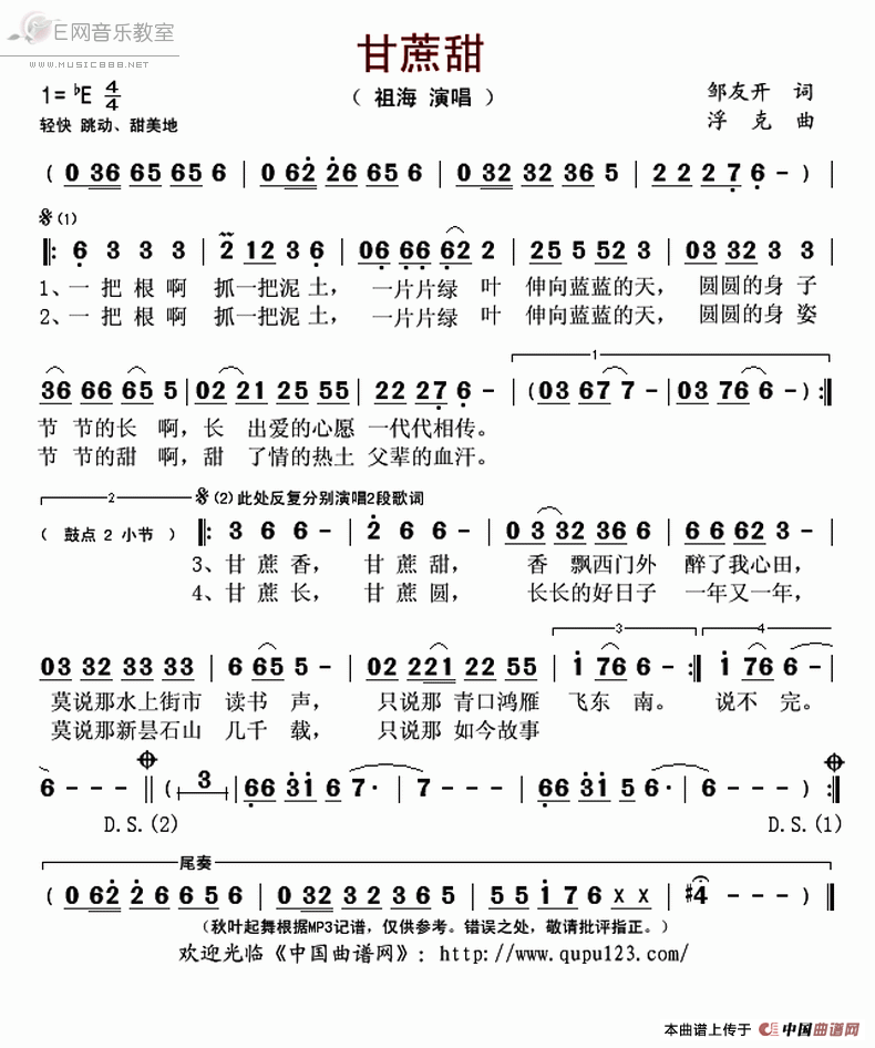 福桔圆圆 甘蔗甜甜 女声独唱 童声伴唱