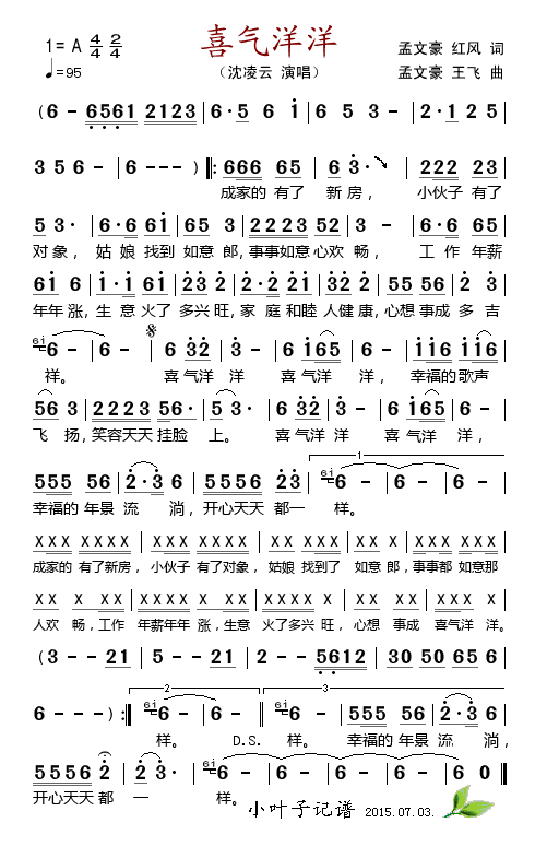 - [歌谱] 我要高飞 全动画大电影 喜羊羊与灰太狼 喜气洋洋过蛇年 插曲