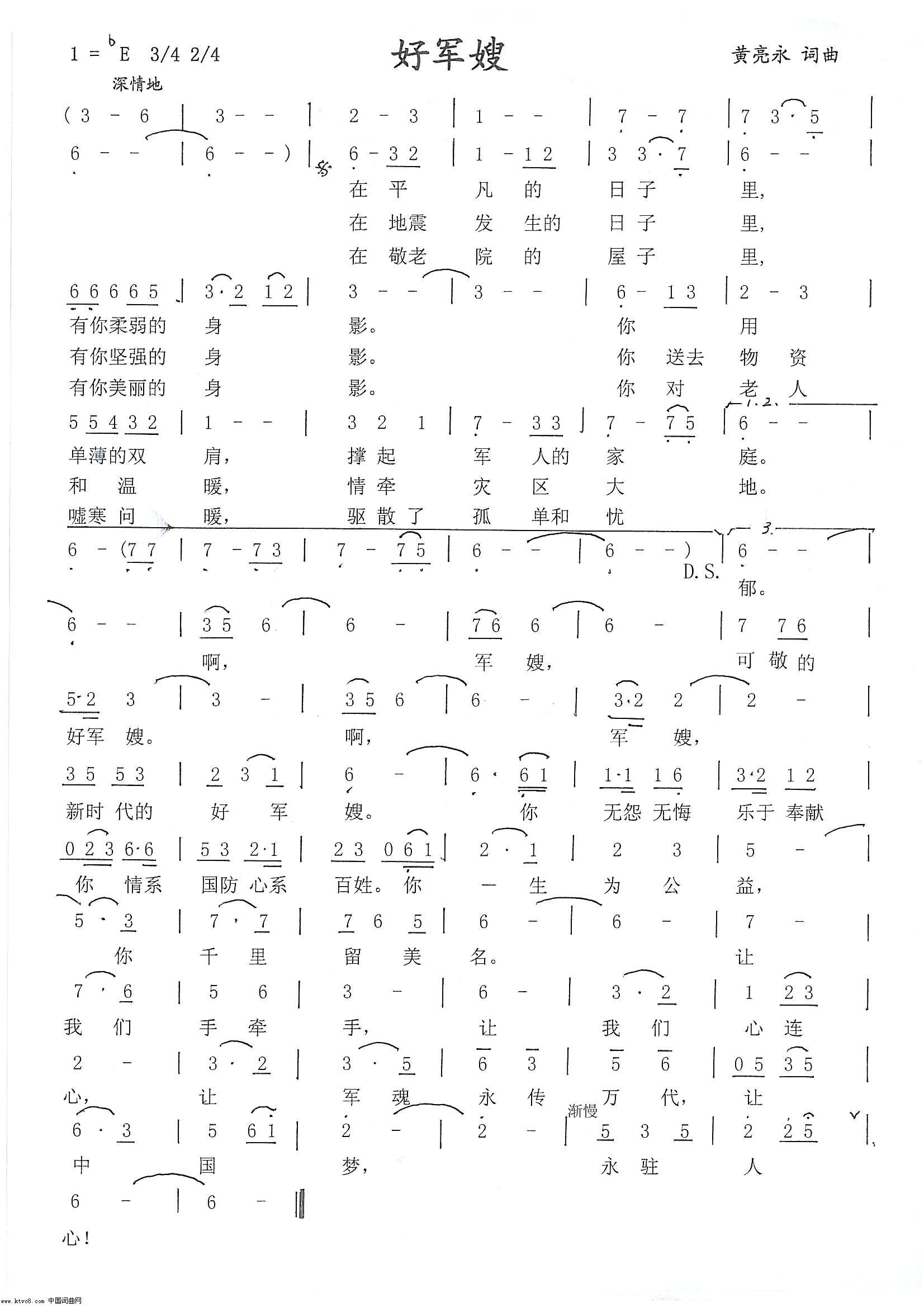 - [歌谱] 军嫂你好