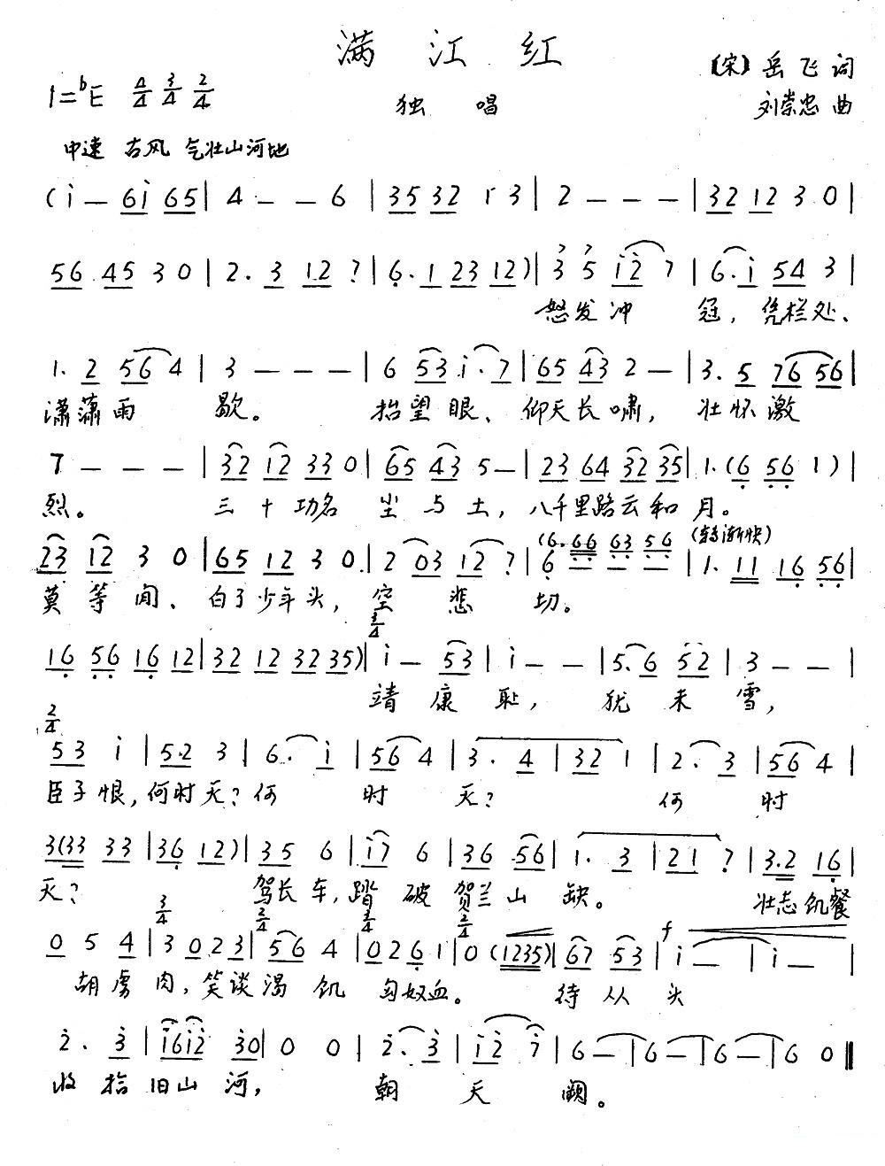 - [歌谱] 满江红 宋 杨荫浏配伴奏
