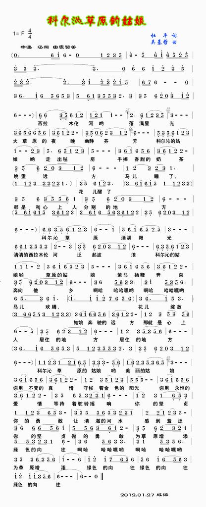 - [歌谱] 心中的科尔沁草原 陈喜阳