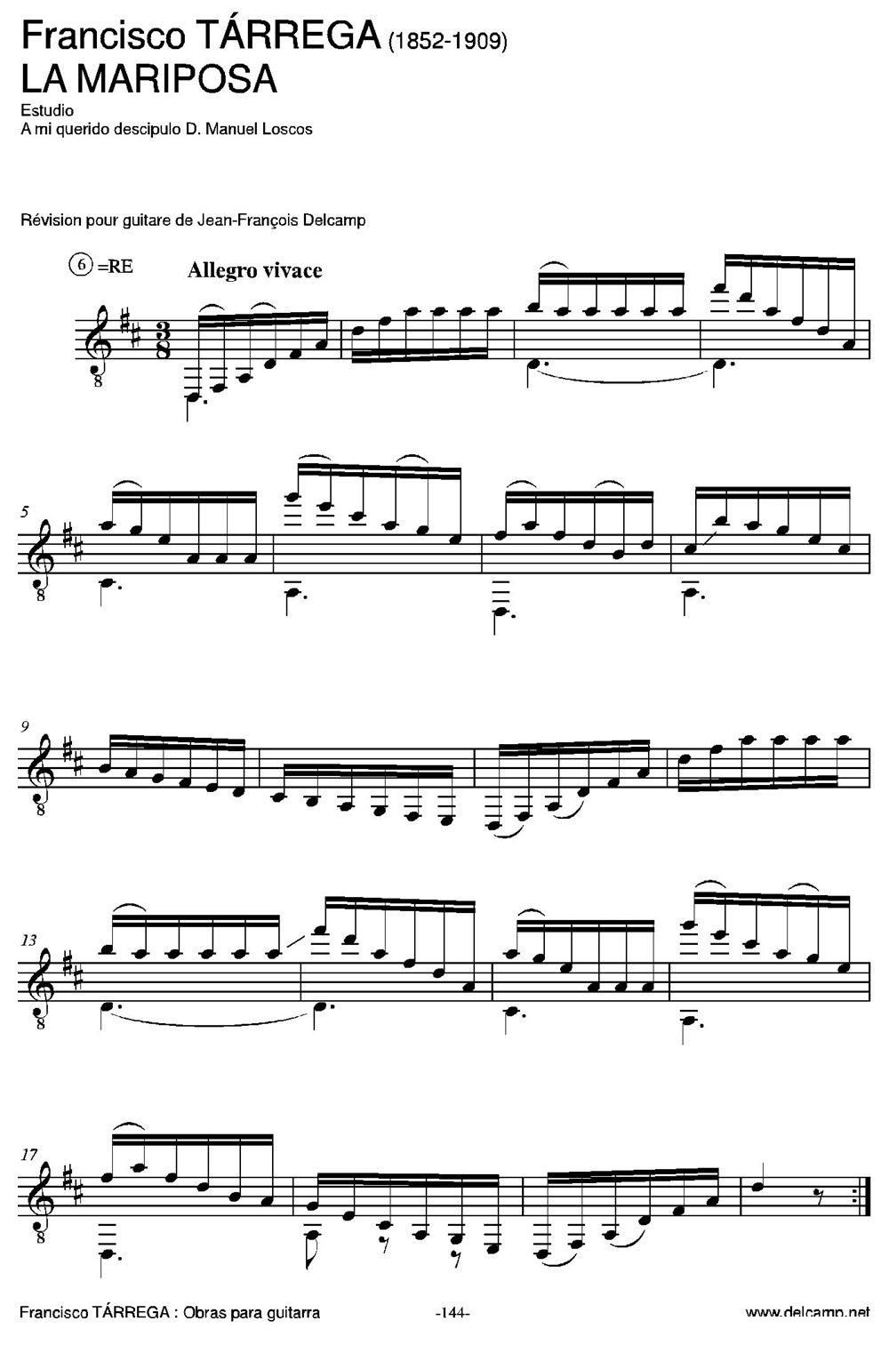 > LA MARIPOSA Estudio A mi querido descipulo D Manuel Loscos 古典吉他
