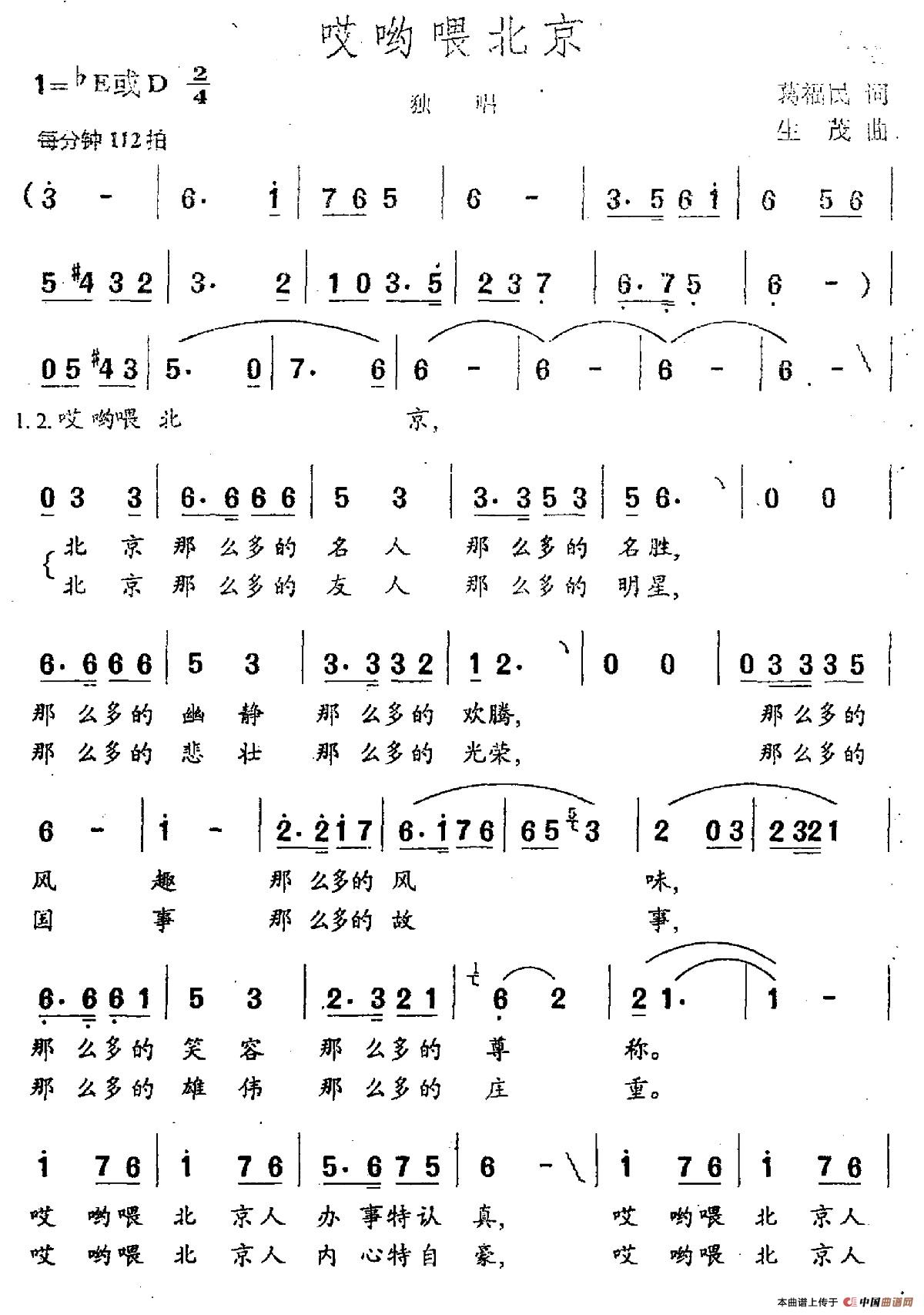 - [歌谱] 哎哟喂 北京
